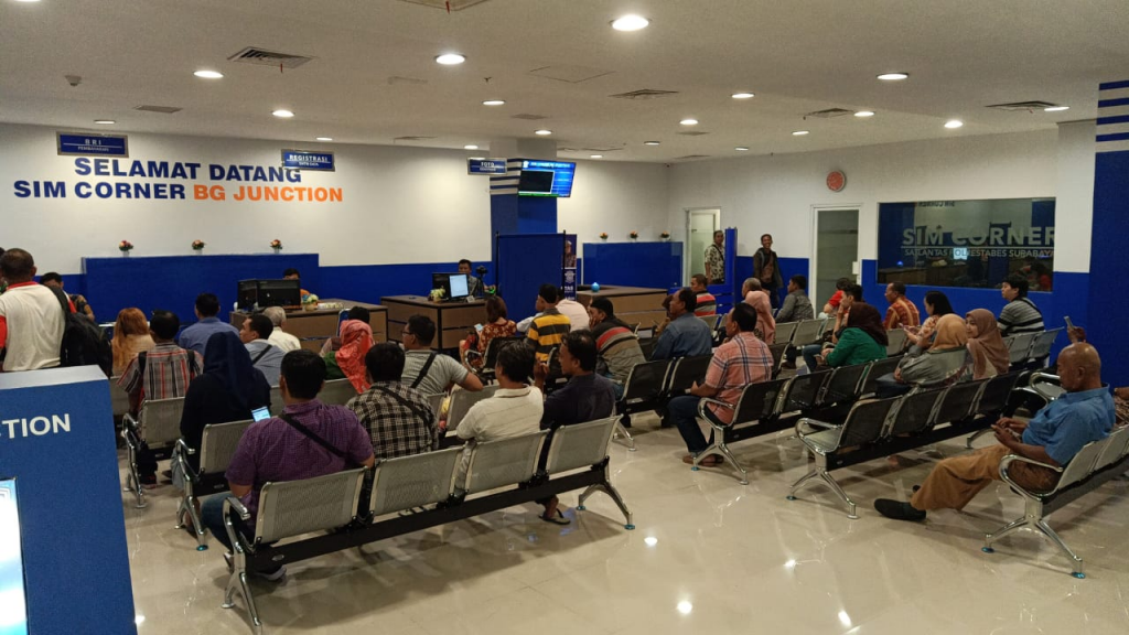 Untuk waktu pelayanan di SIM Corner Mall BG Junction dilaksanakan setiap hari (kecuali hari libur nasional) dibuka mulai pukul: 10.00 s/d 15.00 WIB.