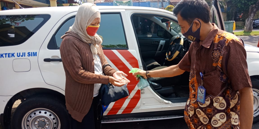 Corona atau covid 19 masih menghantui masyarakat, hal ini diwajibkan ke hati-hatian dengan selalu menjalani protokol kesehatan yang sudah di siapkan oleh petugas. agar tidak terjadi penyebaran, petugas melakukan antisipasi dengan menyemprotkan hand zanitizer kepada pemohon ujian praktek R4 sebelum melakukan tes...