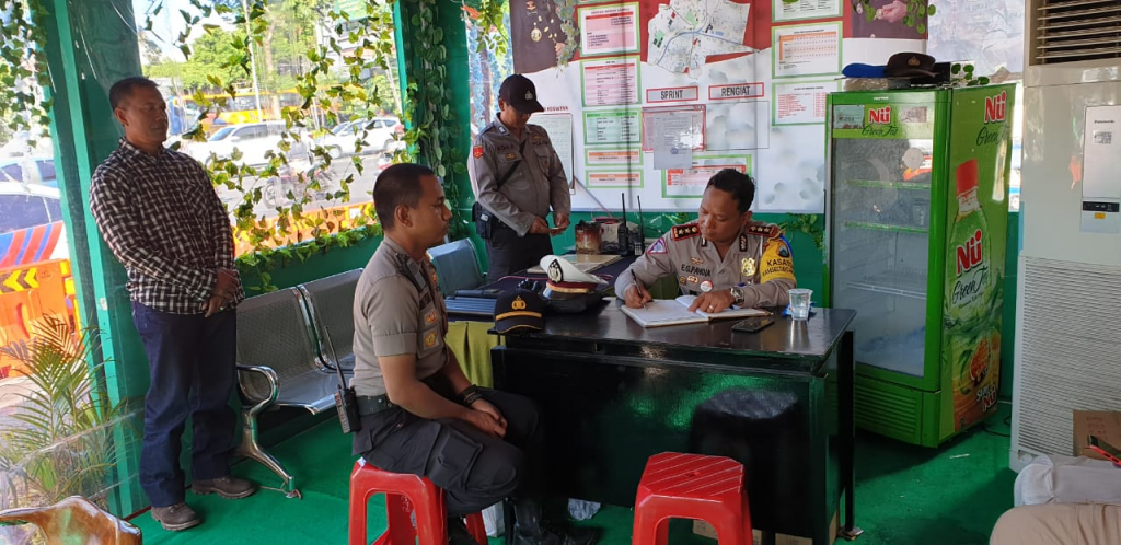 Selain melakukan pemantauan, Kasat Lantaspun juga melakukan pengecekan di Pos PAM yang ada depan KBS dan memberikan arahan kepada anggotanya.