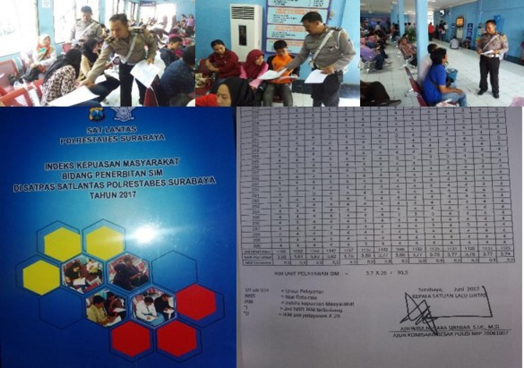 hasil pengumuman survey indeks kepuasaan masyarakat bulan Juni tahun 2017, yang dilaksanakan oleh lembaga eksternal pada pelayanan penerbitan SIM di Satpas Colombo Satlantas Polrestabes Surabaya.