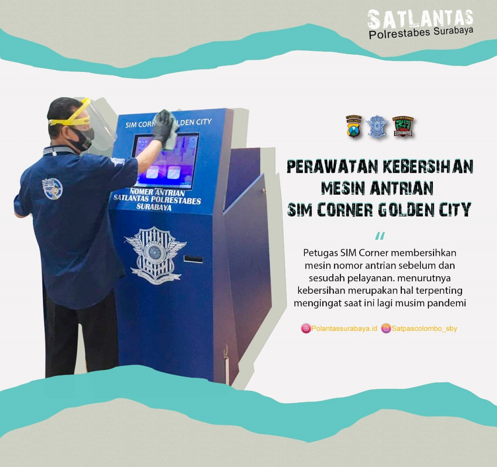 Rutin dibersihkan, Mesin Antrian SIM Corner Colden City Aman dari penyebab penyebaran Corona.