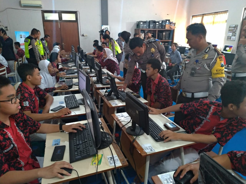 AKBP Eva Guna Satlantas Polrestabes Surabaya baru-baru ini telah meluncurkan e-SIM yang akan menambah kenyamanan dalam pemohonan Surat Ijin Mengemudi (SIM). Salah satu fasilitas yang dimiliki e-SIM adalah pemohon SIM tidak harus datang ke satpas Colombo untuk mengikuti ujian teori. Seperti yang dilaksanakan siswa-siswi di SMAN 6 Surabaya ini,