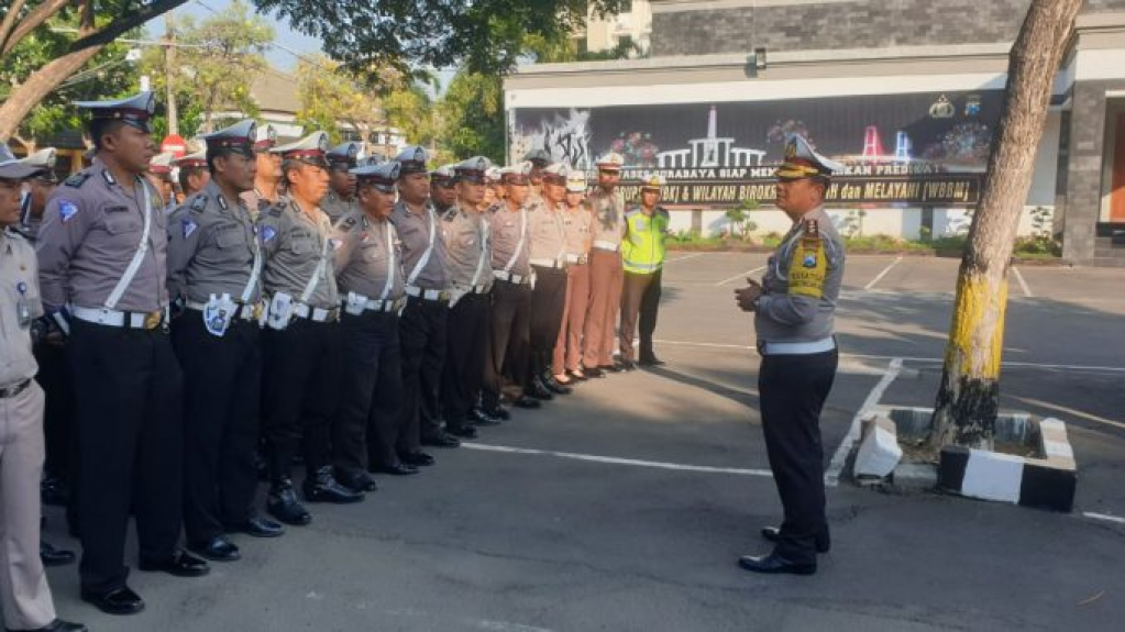 polrestabes surabaya, selasa 11 juni 2019 bertempat dilapangan apel polrestabes surabaya kasat lantas akbp eva guna pandia sh, sik, mm. mh memberi pengarahan anggota satlantas polrestabes surabaya dalam rangka antisipasi arus balik dan mall serta tempat tempat rekreasi yang ada di wilayah hukum polrestabes surabaya sehingga terciptannya kamseltibcarlantas.