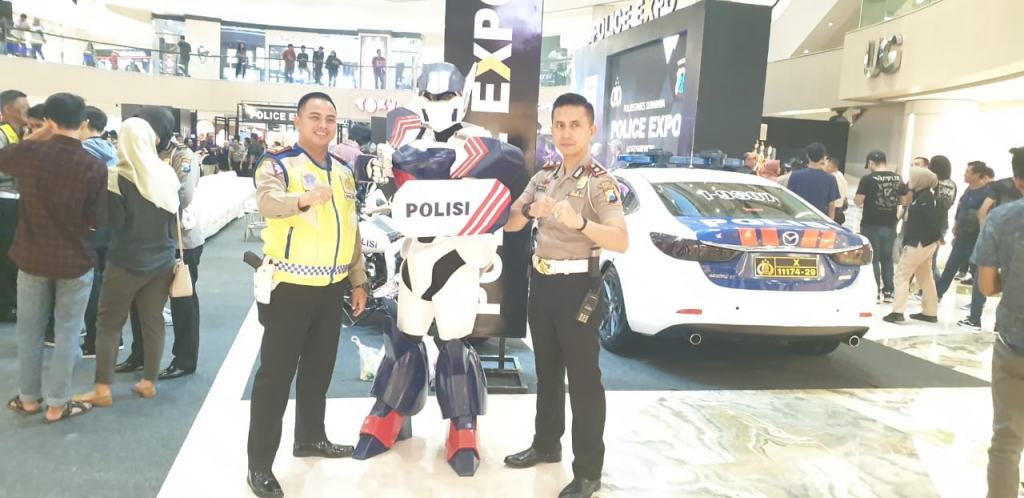 wakasat lantas kompol Arief Mukti mendatangkan robot polisi di pameran police exspo di TP 1 kamis (11/7/2019) pengunjung berantusias untuk berfoto bersama robot yang di buat dan didesain oleh wakasat lantas polrestabes surabaya.