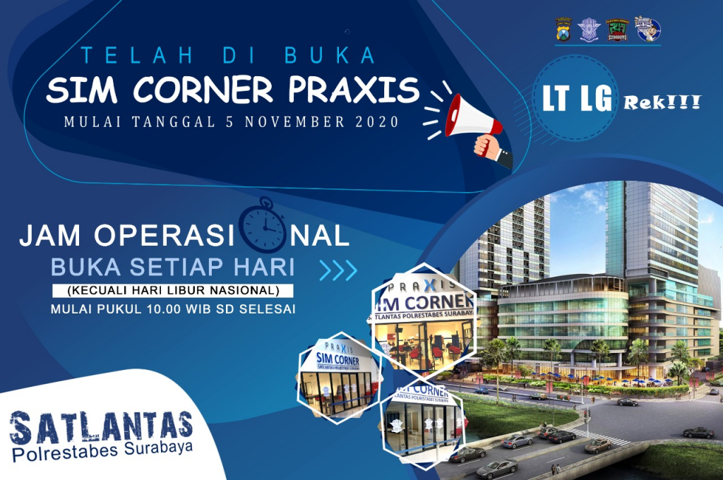 Telah di Buka, Sim Corner terbaru besok hari kamis 5 november 2020 tepatnya pada pukul 08.30 WIB di Mall Praxis Lt LG. Jam operasional akan selalu buka setiap hari kecuali hari libur nasional.