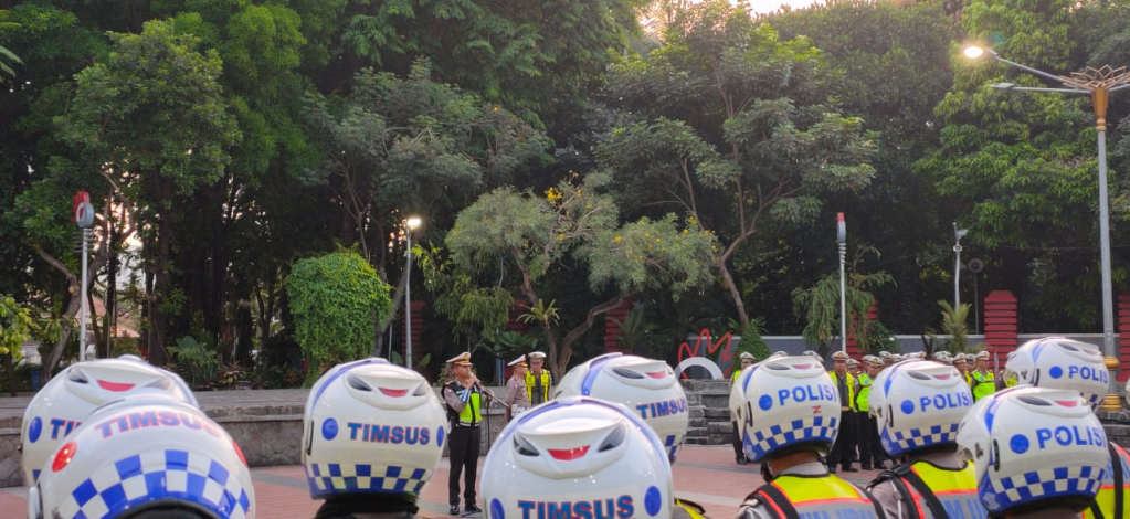 unit timsus speed bersama Anggota Sat Lantas Polrestabes Surabaya Melaksanakan Apel fungsi Di Taman Bungkul surabaya yang di pimpin kasat lantas kompol teddy candrab S.I.K, M,SI.